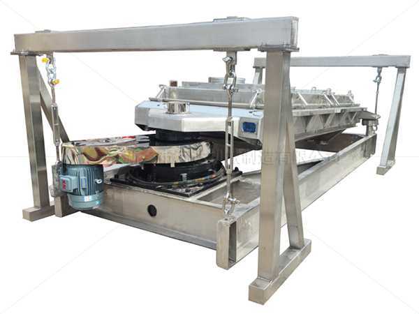 平面回轉篩又稱往復篩,其驅動裝置所產生的振動力是一繞定軸、方向呈一定規律變化的慣性力,其本質是由偏心輪繞定軸轉動所形成的往復慣性力。根據回旋篩的結構特點及工作原理,其篩面一般為水平或微傾斜布置。