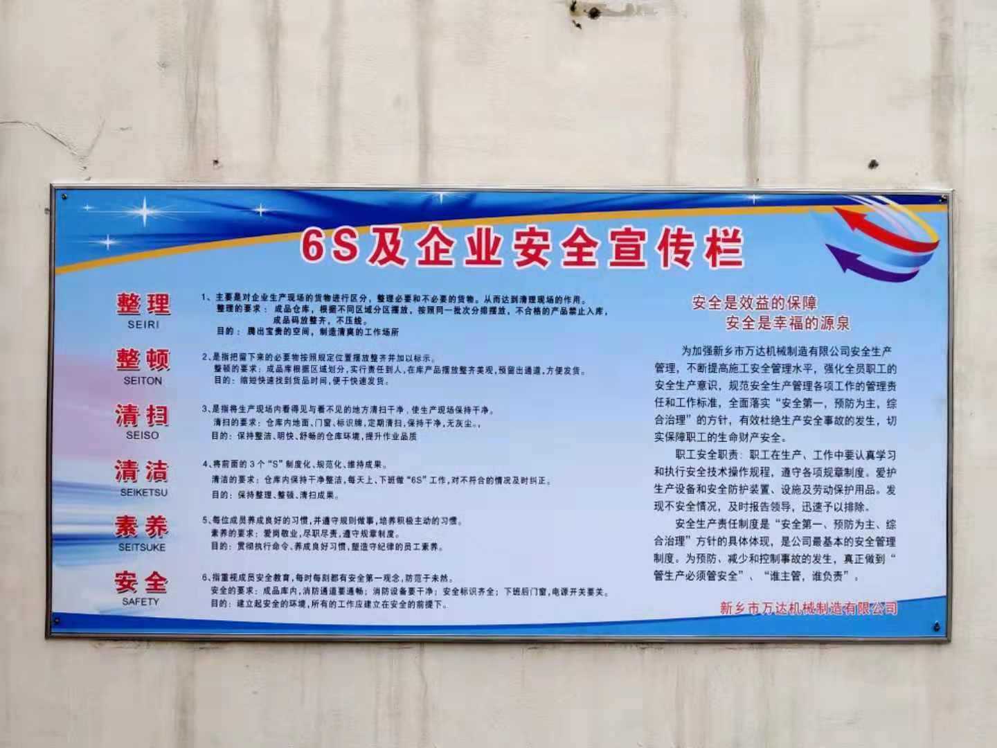 萬達不僅要生產優質的產品,也要生產優美的環境,更要生產高素質的人才。6S是一場增強企業體質,不斷提高安全、效率、品質、效益和素養的活動。
